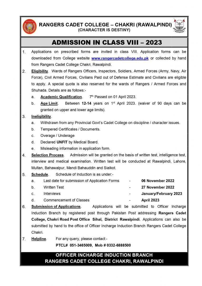 Girls Cadet College Mardan Admission 2023 Class 8th and 1st Year July 24, 2022July 21, 2022 … Read more