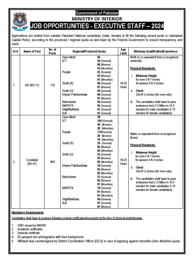 ICT Islamabad Police Jobs June 2024| Online Apply